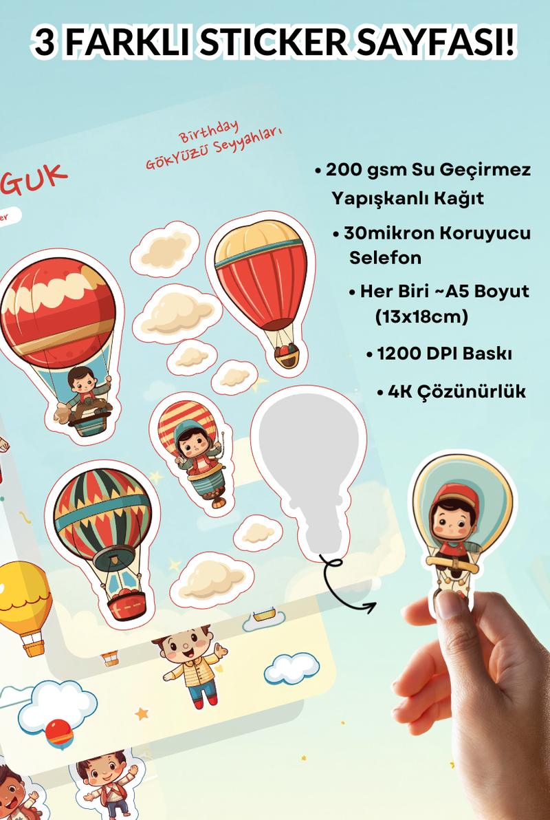 • Her Biri ~A5 Boyutunda (13x18cm) 3 Farklı Sticker Yaprağı