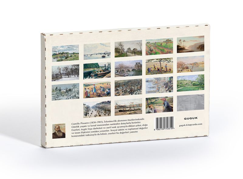 Camille Pissarro (1830-1903), İzlenimcilik akımının öncülerinden biri olarak kabul edilir. Natüralist detaylara odaklanarak, günlük yaşamın ve kırsal manzaraların betimlemelerini sunar. Pissarro'nun eserleri, fırça darbelerinin özgürlüğü ve renklerin zarif uyumunu vurgular; bu da onun doğayı ve insanın onun içindeki yerini yeniden yorumlama yeteneğini gösterir. Sosyal adalet ve toplumsal değerler konusundaki tutkusuyla da tanınır, eserleri bu değerlerin bir yansımasıdır.