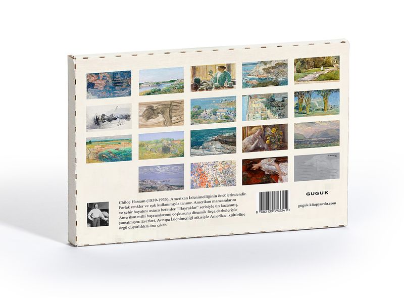 Childe Hassam (1859-1935), Amerikan İzlenimciliğinin öncülerinden biridir. Parlak renkler ve ışık kullanımıyla tanınan Hassam, Amerikan manzaralarını ve şehir hayatını ustaca betimlemiştir. Özellikle “Bayraklar” serisi ile ün kazanmış, bu seride Amerikan caddelerinin milli bayramlardaki coşkusunu dinamik fırça darbeleriyle yakalamıştır. Hassam'ın eserleri, Avrupa İzlenimciliğinden etkilenmiş olsa da, Amerikan kültürü ve manzaralarına özgü bir duyarlılıkla öne çıkar.