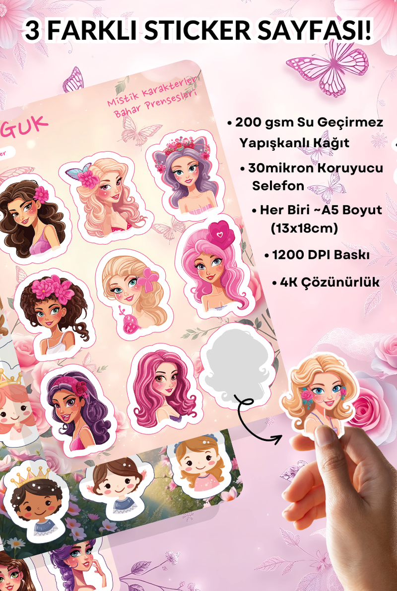 • Her Biri ~A5 Boyutunda (13x18cm) 3 Farklı Sticker Yaprağı