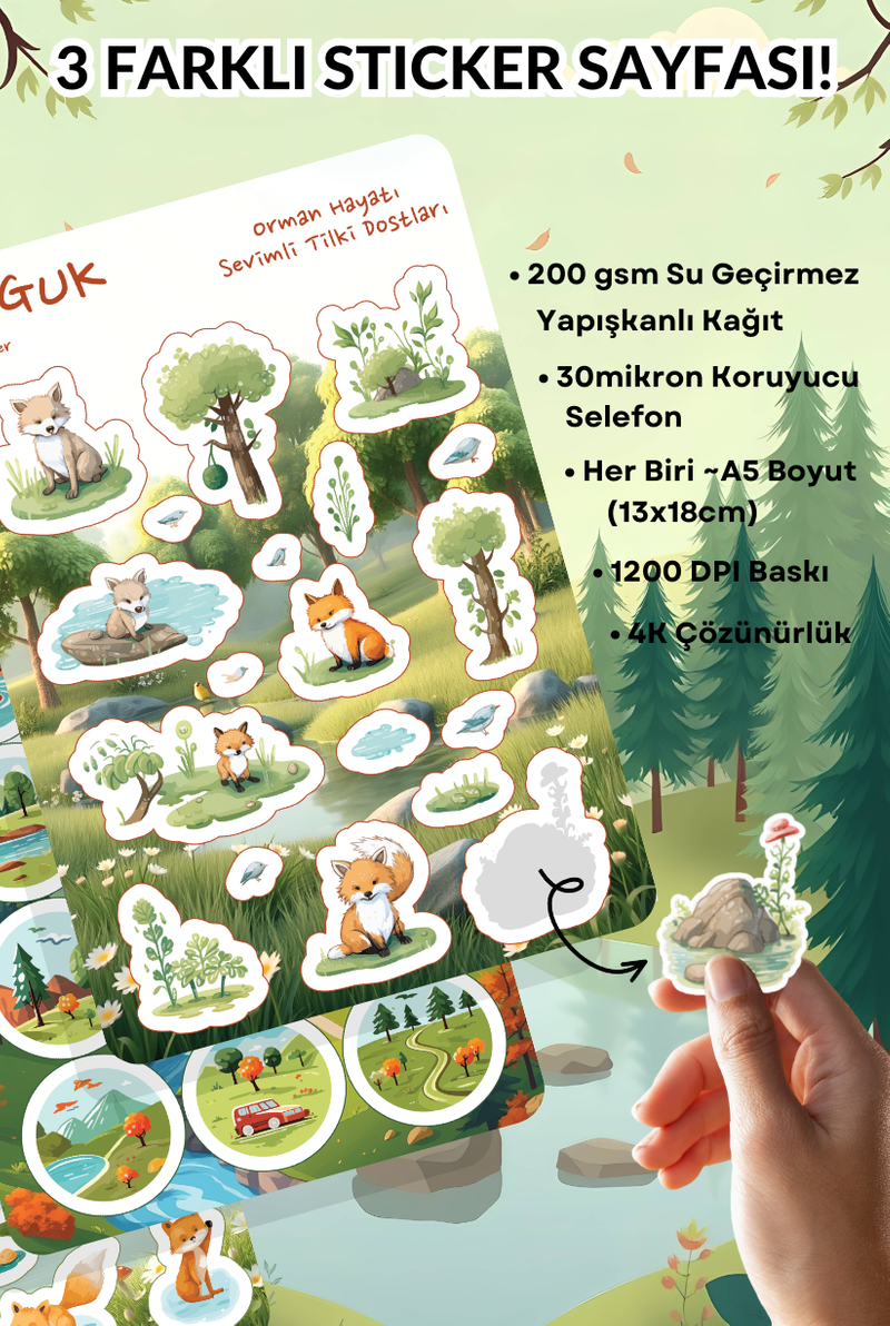 • Her Biri ~A5 Boyutunda (13x18cm) 3 Farklı Sticker Yaprağı