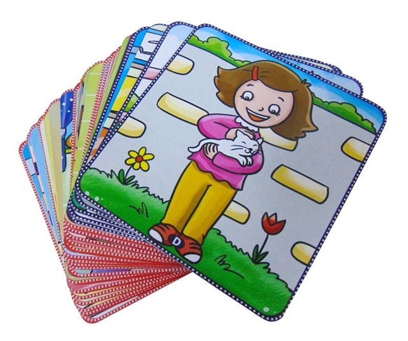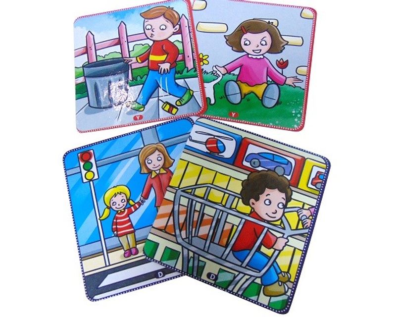 Setimizde toplam 20 kalın karton kart ve arkalı önlü 40 adet illüstrasyon vardır. 20 adet doğru davranış, 20 adette yanlış davranış resmedilmiştir.