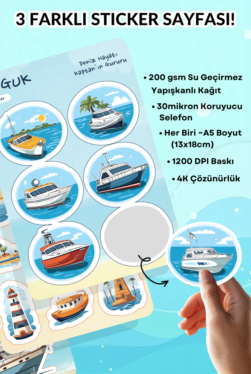 • Her Biri ~A5 Boyutunda (13x18cm) 3 Farklı Sticker Yaprağı