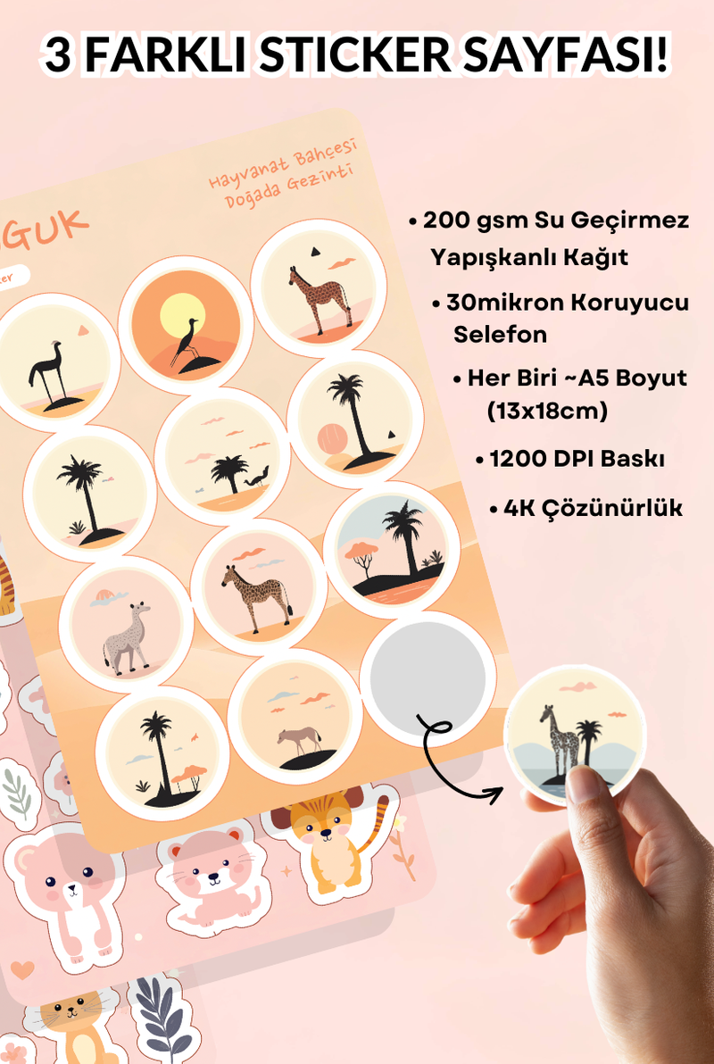 • Her Biri ~A5 Boyutunda (13x18cm) 3 Farklı Sticker Yaprağı