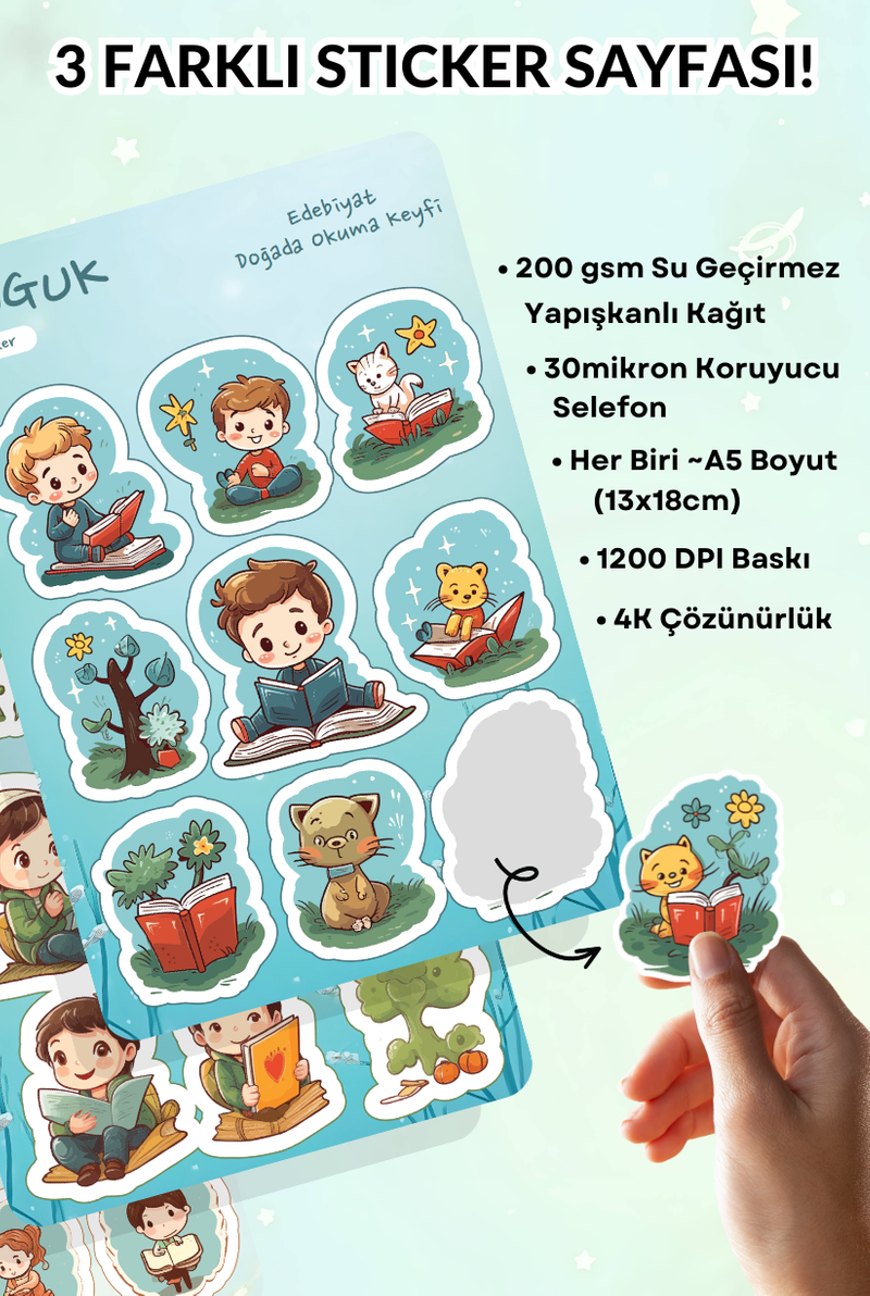 • Her Biri ~A5 Boyutunda (13x18cm) 3 Farklı Sticker Yaprağı