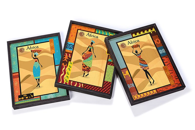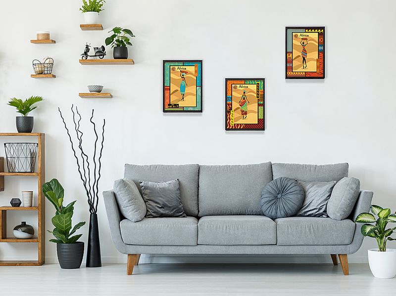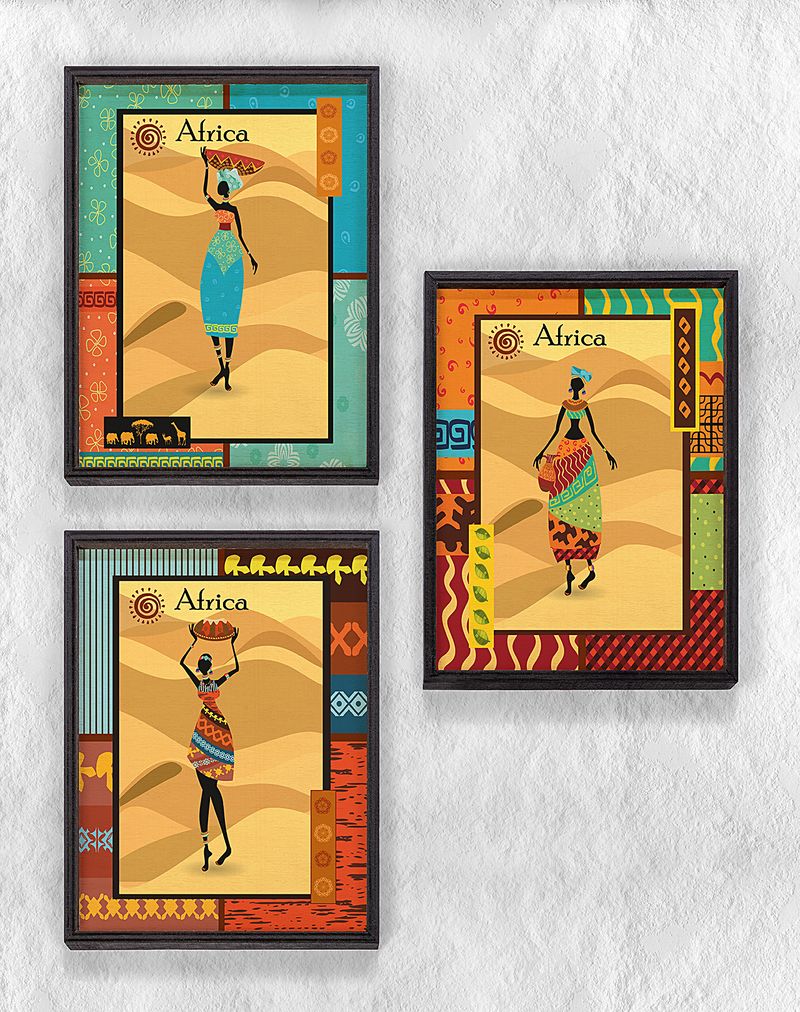 Full Frame Duvar Sanatları - AfrikaObje - Etnik Elbiseli Afrikalı Kadınlar 3 - Üçlü Set(FF-DS206)