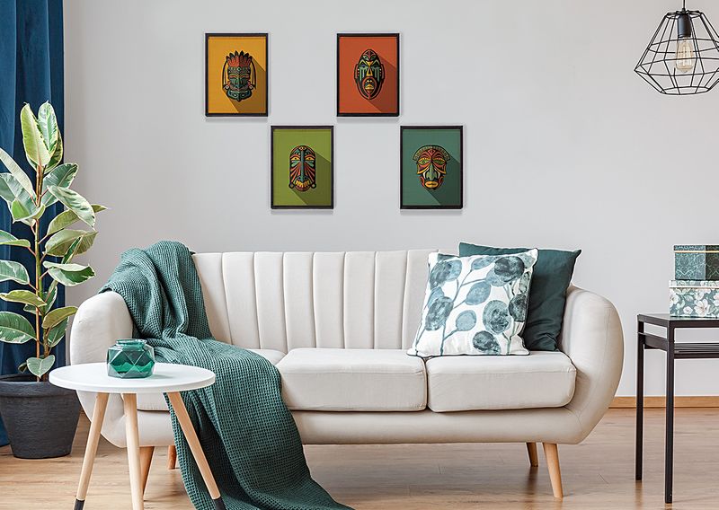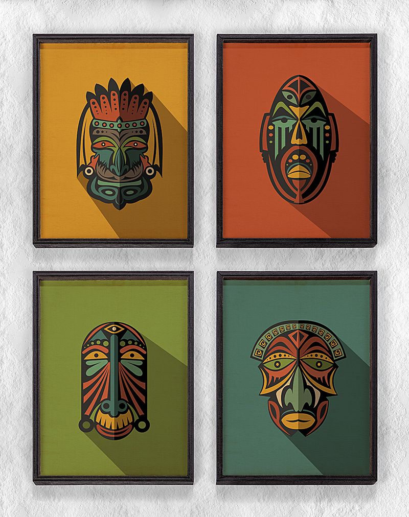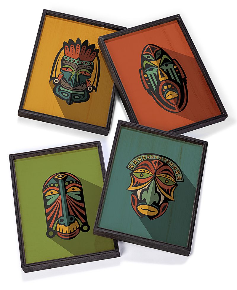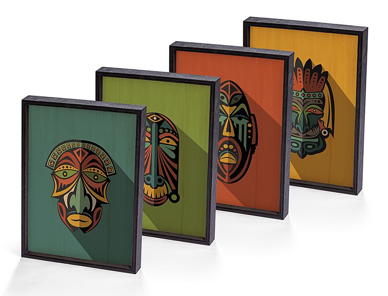 Full Frame Duvar Sanatları - AfrikaObje - Etnik Kabile Maskeleri - Dörtlü Set (FF-DS012)