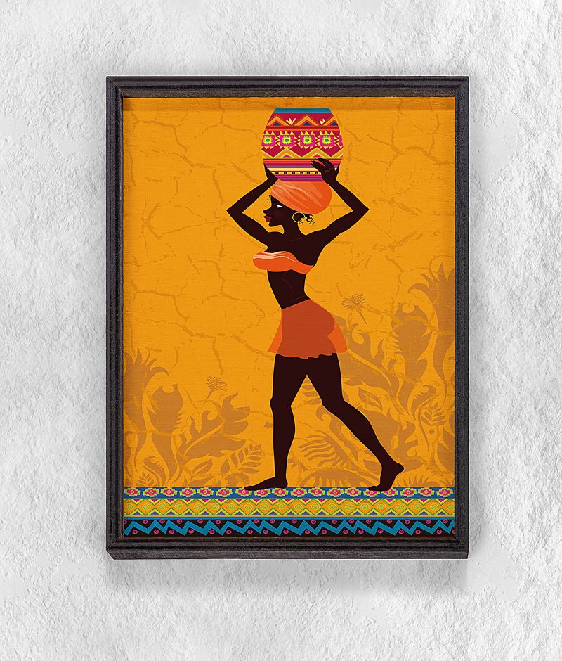 Full Frame Duvar Sanatları - AfrikaObje - Küp Taşıyan Afrikalı Kadın - Tekli Set (FF-DS216)