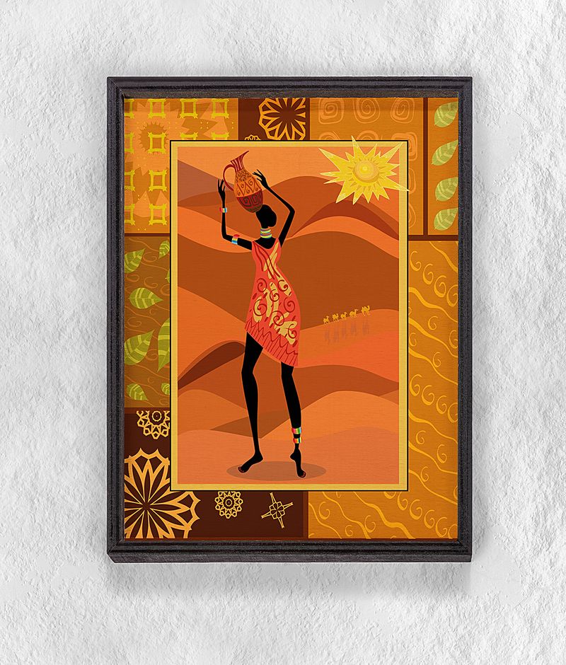 Full Frame Duvar Sanatları - AfrikaObje - Turunculu Afrikalı Kadın - Tekli Set (FF-DS212)