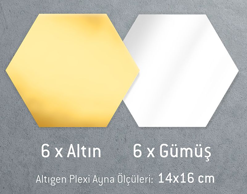 • 12 adet altıgen pleksi Miks ayna (6 adet altın - 6 adet gümüş)