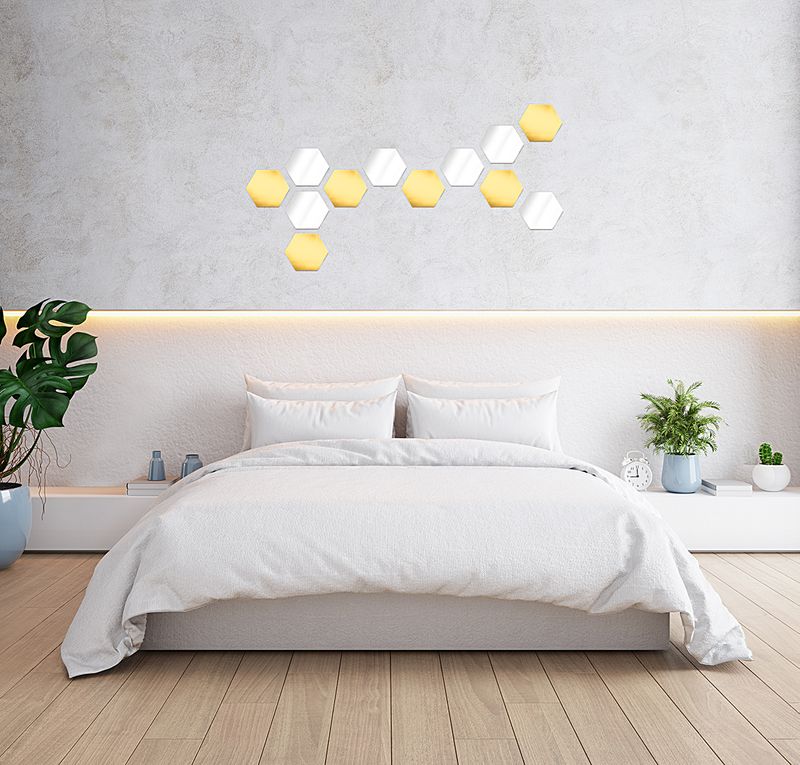 Altıgen pleksi aynalar ile duvarınızda harika dekorlar yapabilirsiniz.