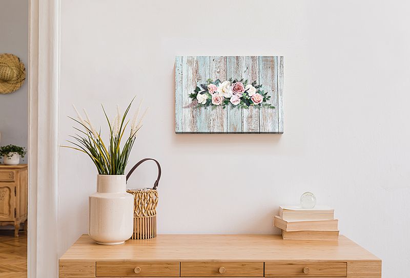Full Frame Duvar Sanatları - CanvasWall DD - Retro Pembe ve Krem Güller (FF-W167)