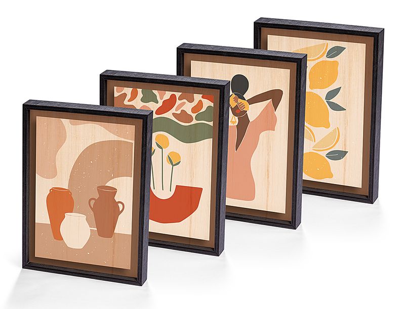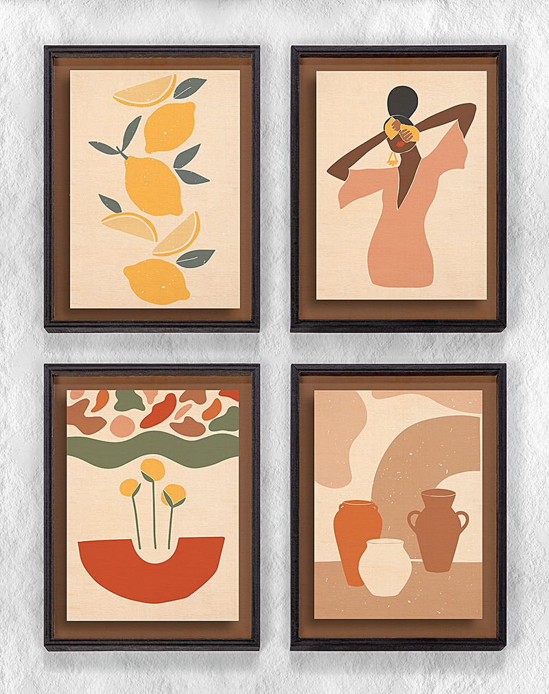 Full Frame Duvar Sanatları - Pastel Soyut Natürmort - Dörtlü Set (FF-DS001)