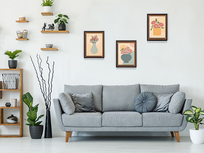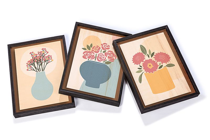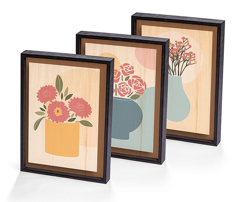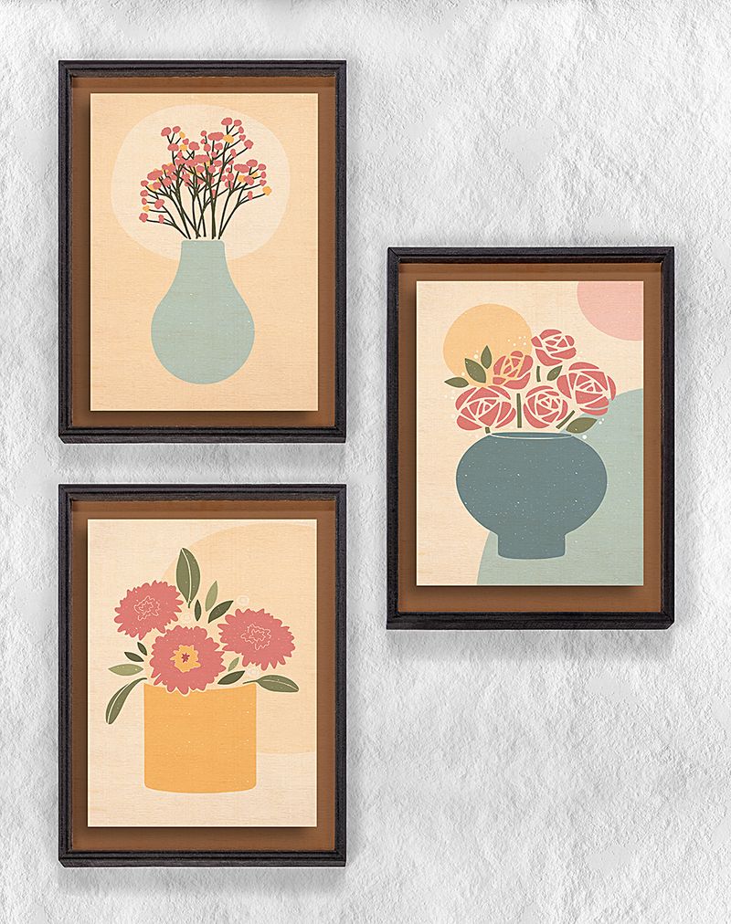 Full Frame Duvar Sanatları - Soyut Natürmort Vazoda Çiçekler - Üçlü Set (FF-DS009)