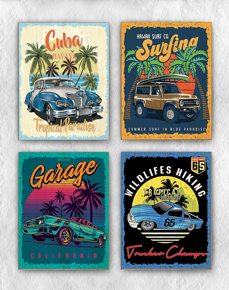 Full Frame Duvar Sanatları - Vintage Tablo Seti 5 (FF-DS298)
