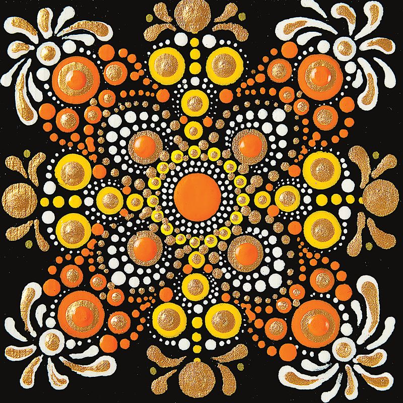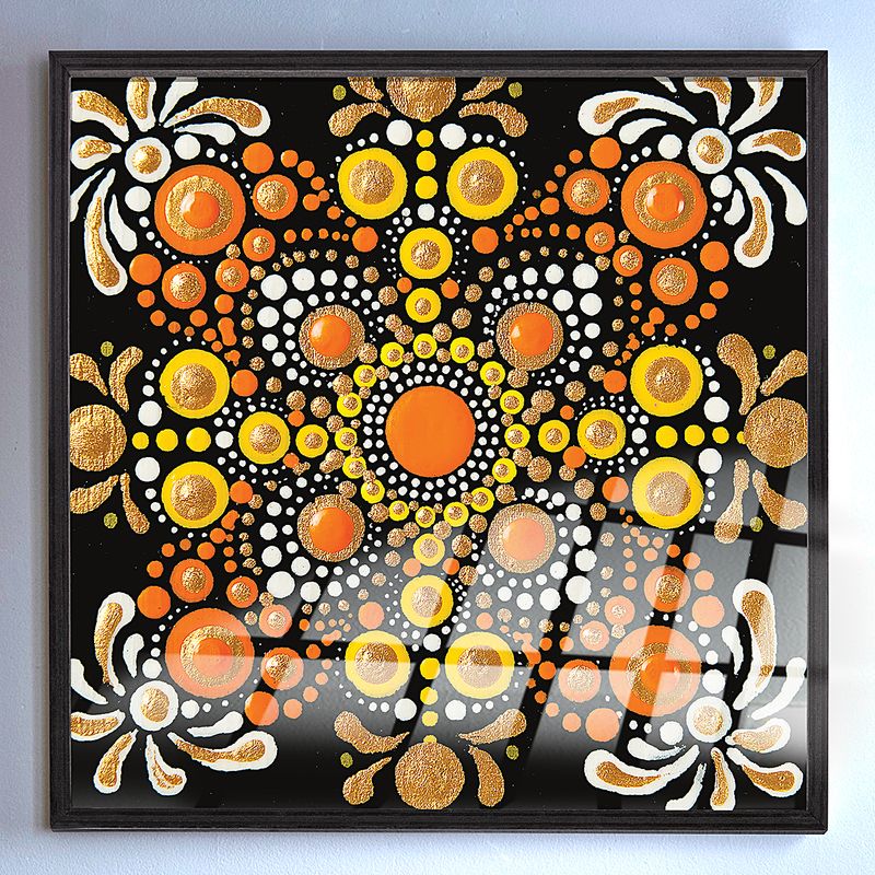 Full Frame Duvar Sanatları - VitrayMandala - Turuncu Altınlı (FF-DSC040)