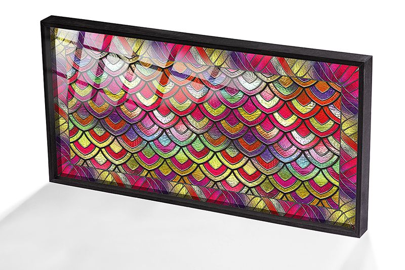 Full Frame Duvar Sanatları - VitrayObje Büyük DD - Renkli, Balık Desenli (FF-DSC070)