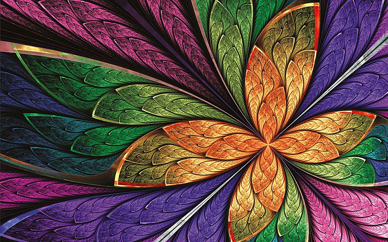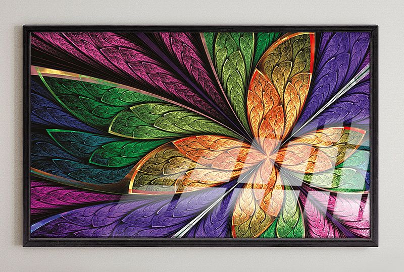 Full Frame Duvar Sanatları - VitrayObje Küçük DD - Renkli, Fraktal Çiçek Desenli Yeşil (FF-DSC059)