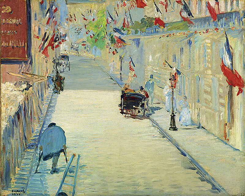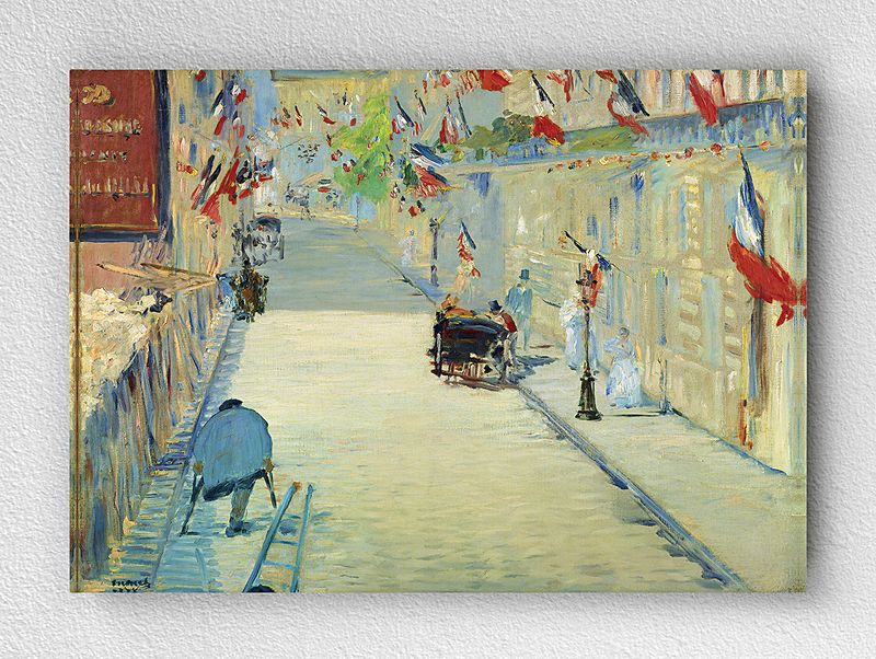 Full Frame pratiCanvas Tablo - Edouard Manet - The Rue Mosnier with Flags 1878 (FF-PCŞ221)