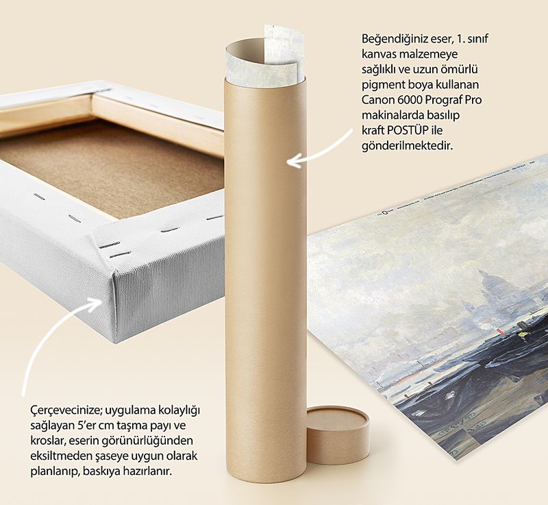 * Beğendiğiniz eser; 1. sınıf kanvas malzemeye sağlıklı ve uzun ömürlü pigment boya kullanılarak, Canon 6000 (12 Renk) Prograf Pro makinalarda basılıp kraft POSTÜP ile gönderilmektedir.