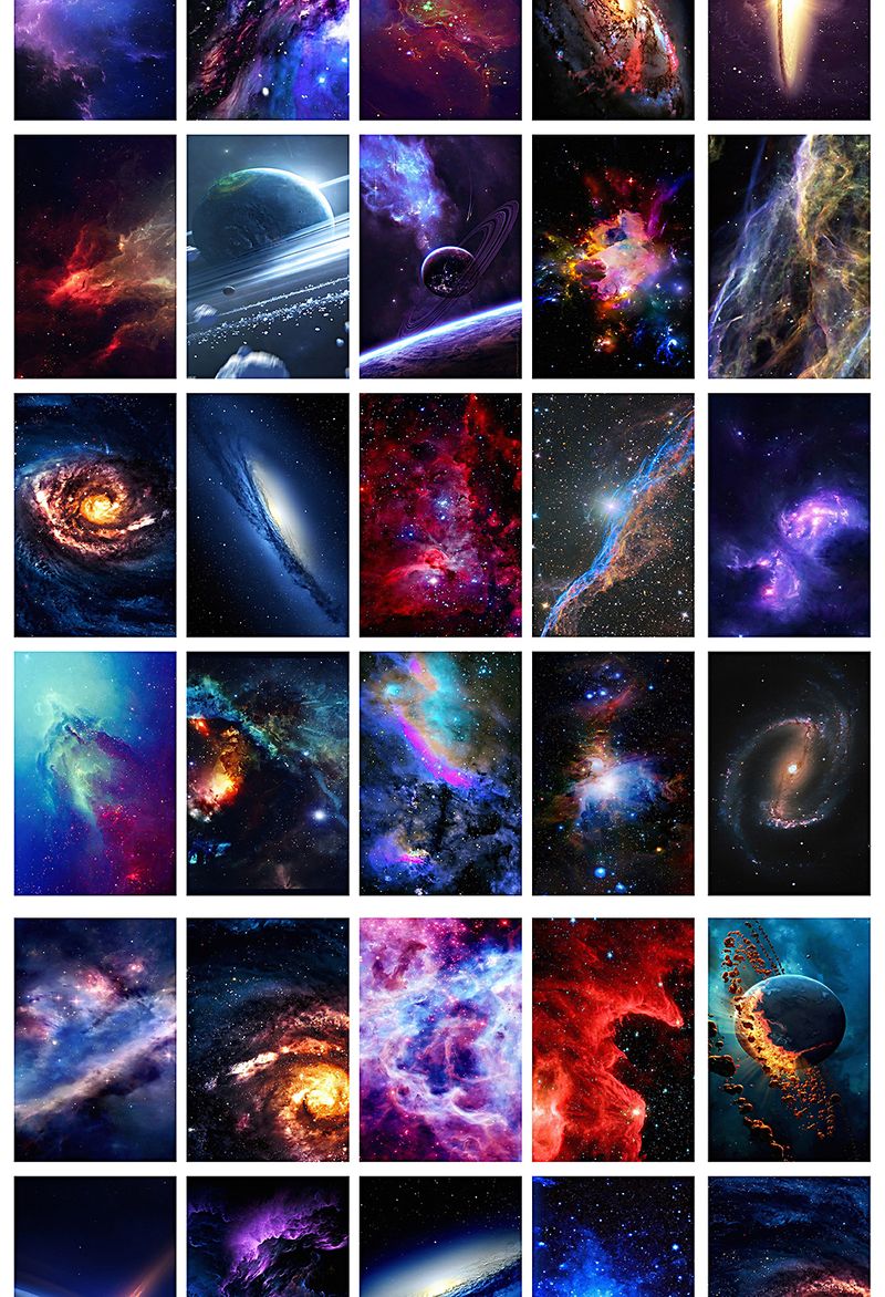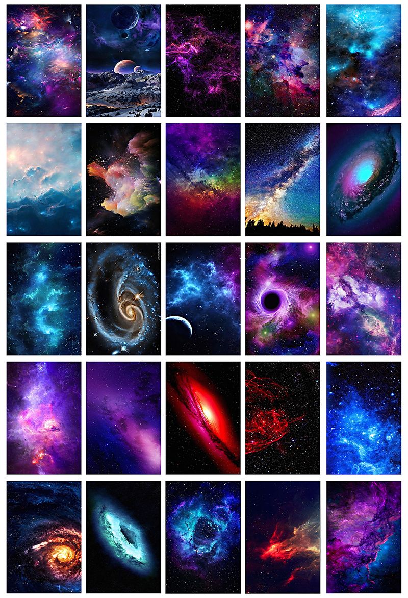 Galaksiler Temalı 54 Adet Duvar Poster Seti Oda Dekoru