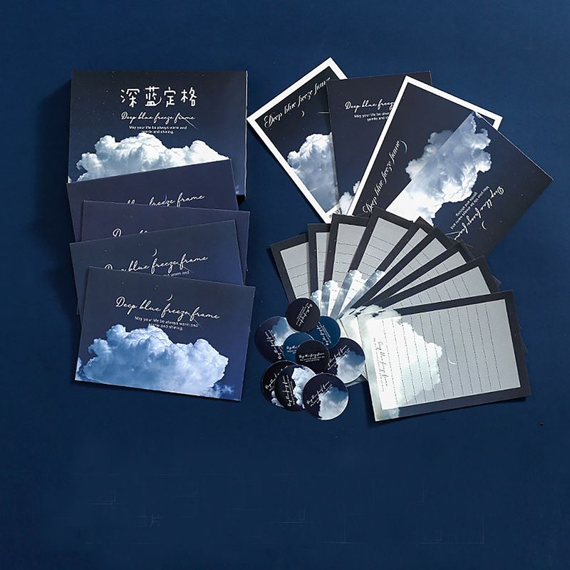 Gecenin Derinlikleri Mektup Seti, 15 x 10 cm boyutlarındaki kutusu ile derinlik ve sakinliği yansıtan bir tema sunar. Zarflar, kartpostallar, mektup kağıtları ve çıkartmalar ile duygularınızı en güzel şekilde ifade etmek için ideal bir settir.