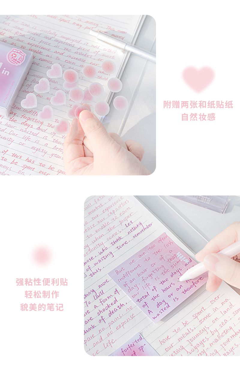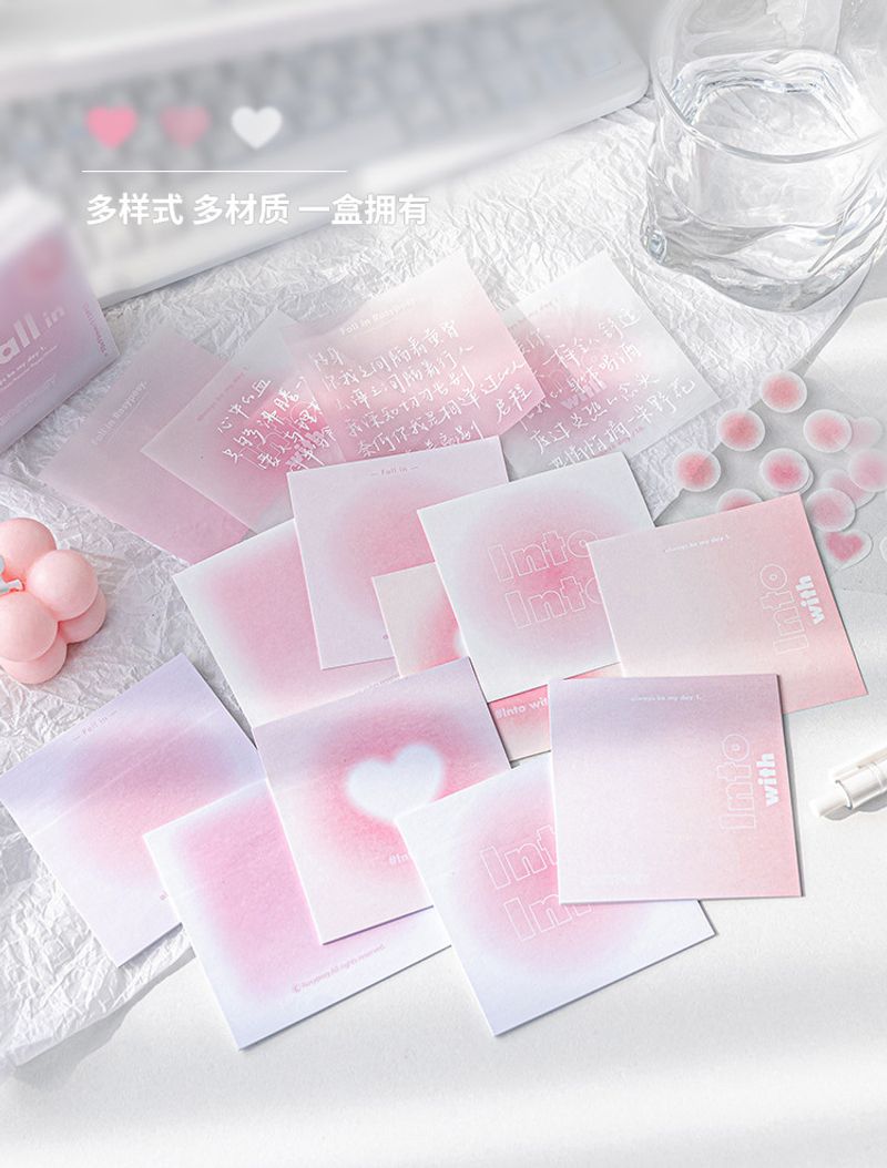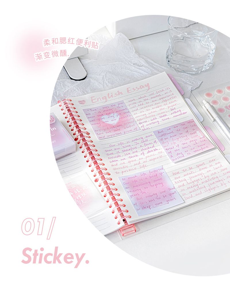 Gradyan Pembesi Not Seti, 70 x 70 mm boyutlarında, yumuşak gradyan tonlarına sahip yapışkan not kağıtlarıyla şıklığı ve işlevselliği bir araya getiriyor. Toplamda 112 yaprak içeren bu set, günlük notlarınızı alırken estetik bir dokunuş sunuyor.