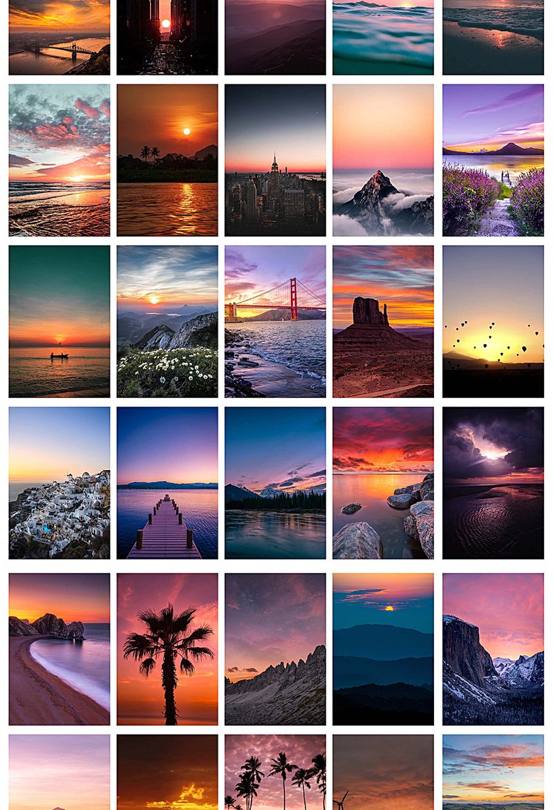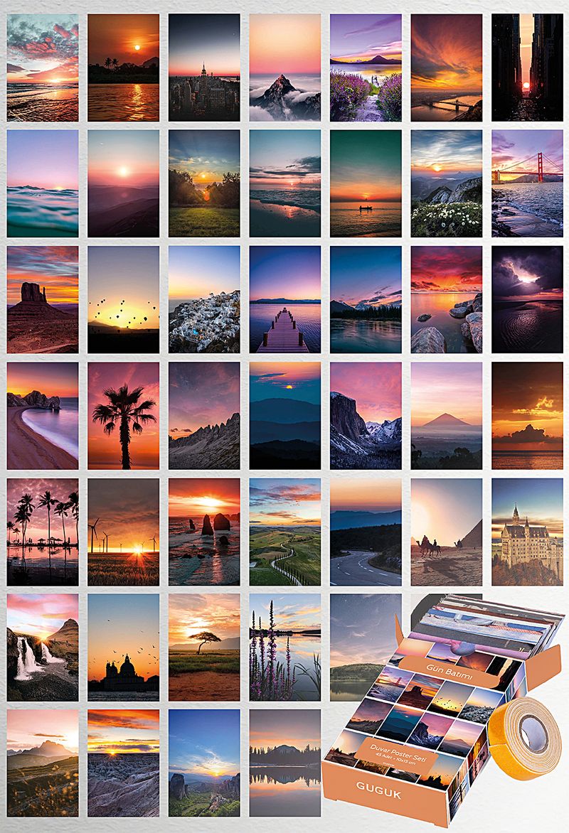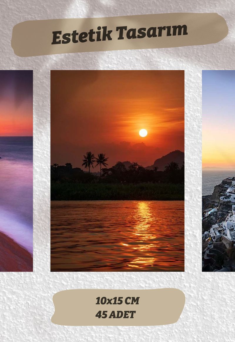 Gün Batımı Temalı 45 Adet Duvar Poster - Kolaj Seti Oda Dekoru