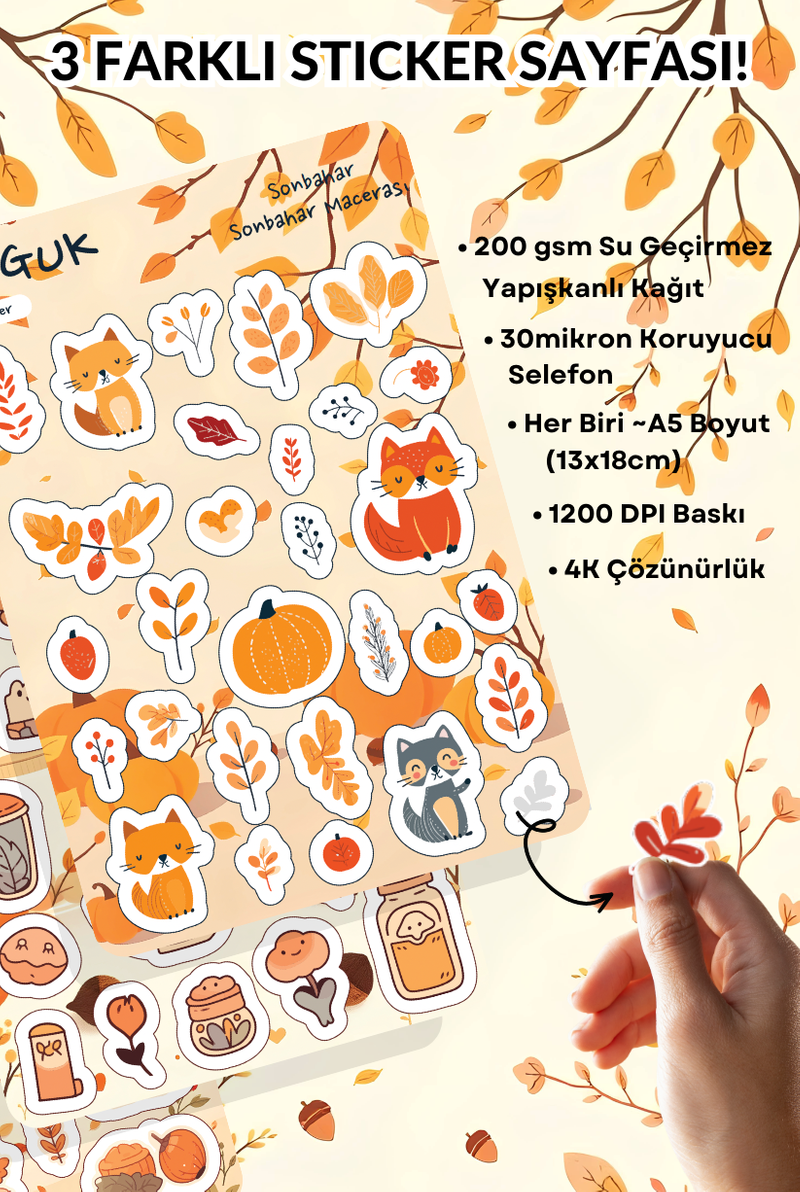 • Her Biri ~A5 Boyutunda (13x18cm) 3 Farklı Sticker Yaprağı