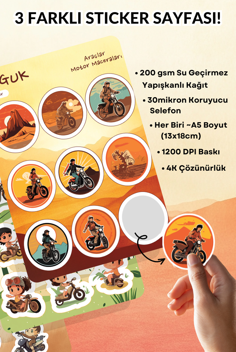 • Her Biri ~A5 Boyutunda (13x18cm) 3 Farklı Sticker Yaprağı