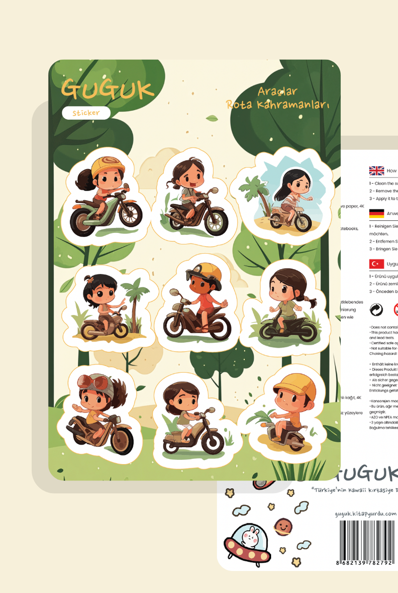 Her sticker, bir ifade, bir yaratıcılık ürünü. GUGUK Stickerları, bu ifadeyi dayanıklı yapısı ve canlı renkleriyle tamamlar. Ortalama bir kitap sayfasından yaklaşık üç kat daha kalın olan kağıt malzemesi tok bir dokunuş sunar. 1200 DPI yüksek çözünürlüklü baskı kalitesiyle tasarımlarınızı en ince detayına kadar kusursuz yansıtırken; selefon kaplaması sayesinde, renklerin canlılığı aylar geçse de ilk günkü gibi korunur! GUGUK Stickerları, sticker dünyasında kaliteyi deneyimlemeniz için hazırlandı.