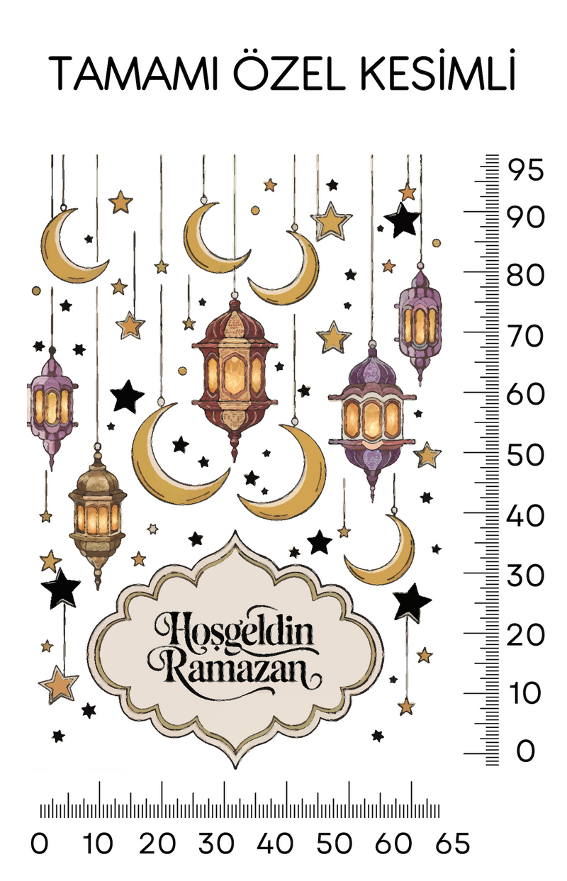 Hoşgeldin Ramazan Renkli Fener Sarkıt Cam Duvar Dekorasyon Sticker Seti