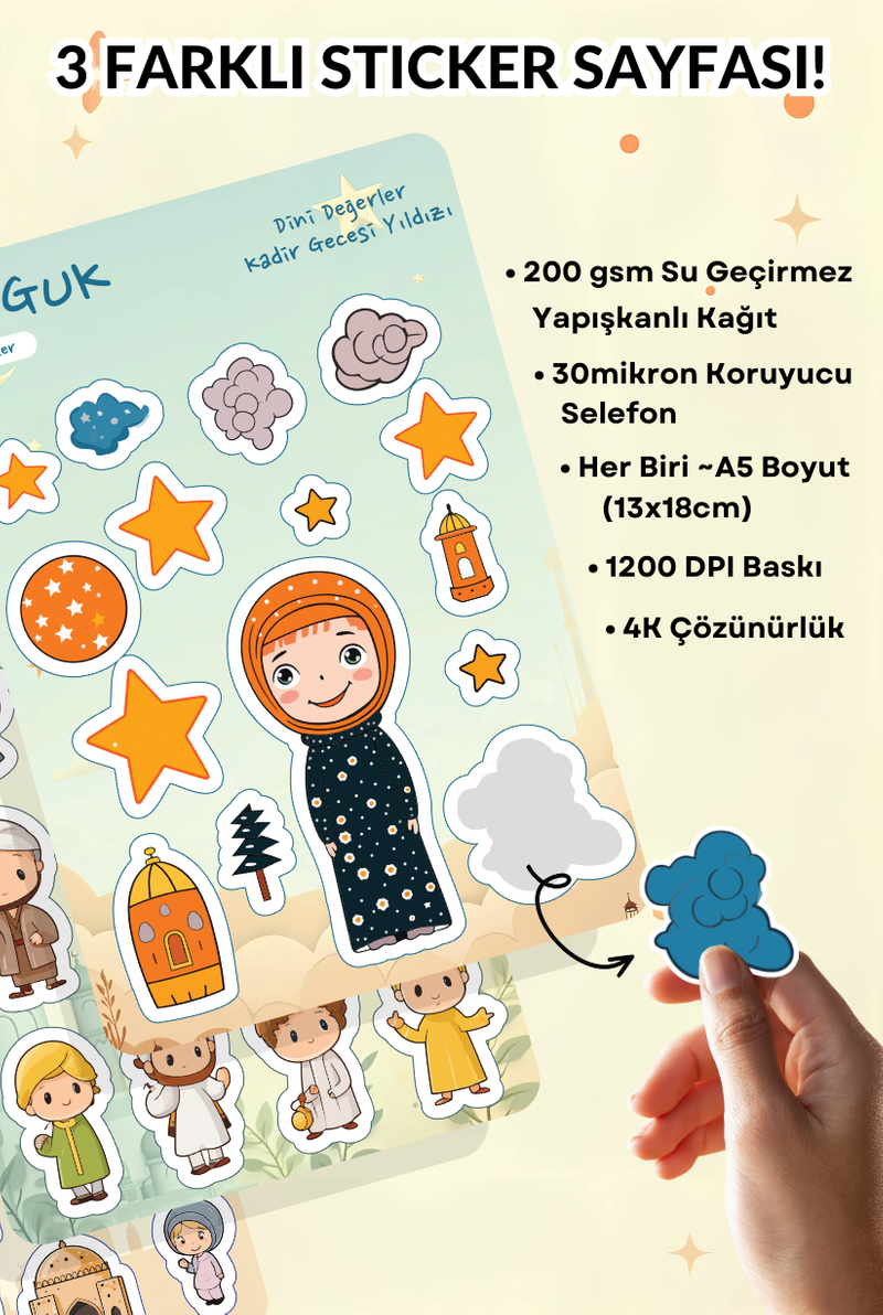 • Her Biri ~A5 Boyutunda (13x18cm) 3 Farklı Sticker Yaprağı