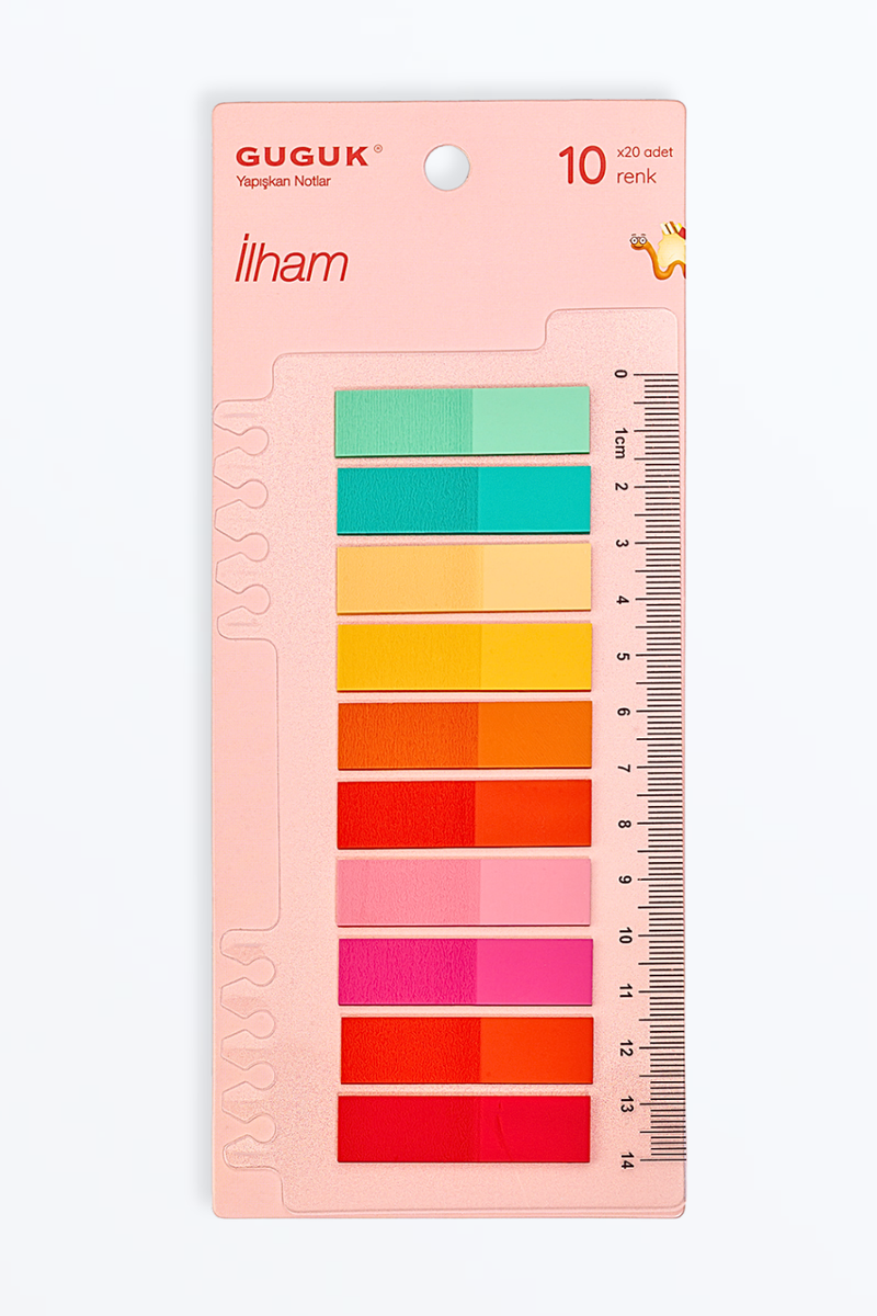 Renkli ve Pratik: 200 adet ilham tonları temalı indeks etiketleriyle düzeninizi ve yaratıcılığınızı artırın! 10 çeşit renk, yapışkanlı, iz bırakmayan yapısı ve cetvel kenarları ile her yerde kullanım kolaylığı sağlar. Ev, ofis, okul için ideal!
