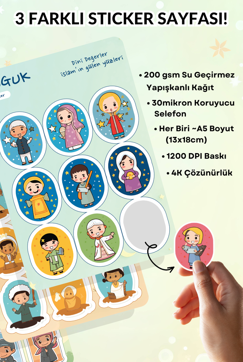 • Her Biri ~A5 Boyutunda (13x18cm) 3 Farklı Sticker Yaprağı