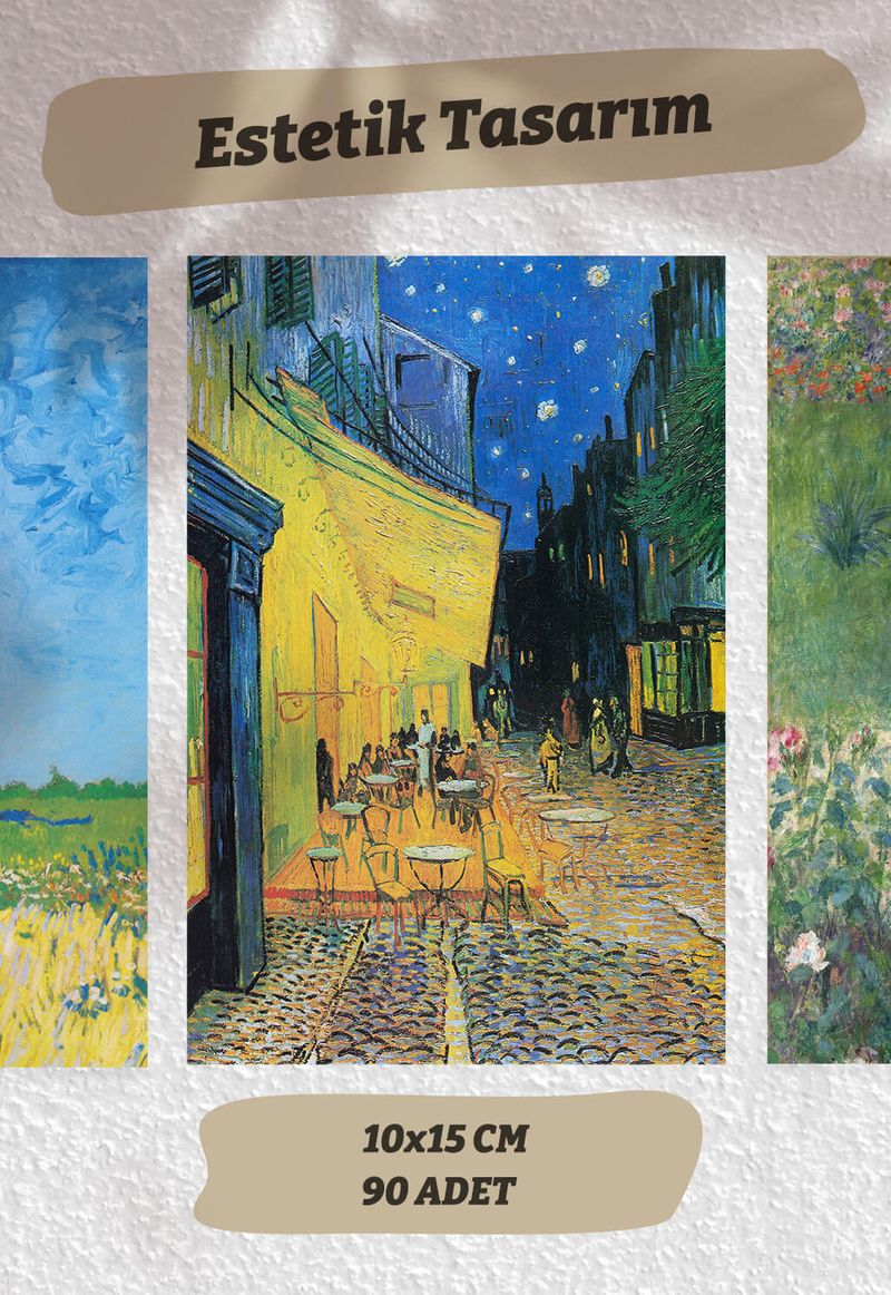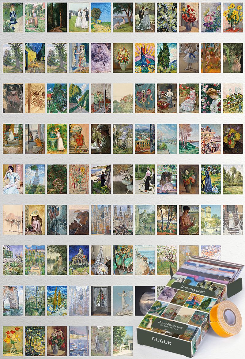 Impresyonist Temalı 90 Adet Duvar Poster - Kolaj Seti Oda Dekoru (Paspartulu)