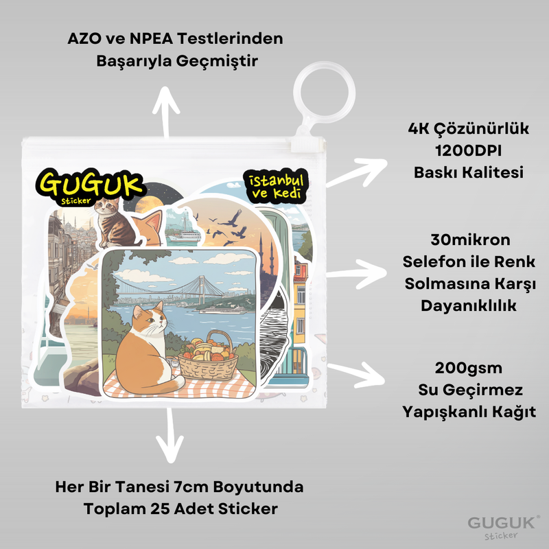 Her sticker, bir ifade, bir yaratıcılık ürünü. GUGUK Stickerları, bu ifadeyi dayanıklı yapısı ve canlı renkleriyle tamamlar. Ortalama bir kitap sayfasından yaklaşık üç kat daha kalın olan kağıt malzemesi tok bir dokunuş sunar. 1200 DPI yüksek çözünürlüklü baskı kalitesiyle tasarımlarınızı en ince detayına kadar kusursuz yansıtırken; selefon kaplaması sayesinde, renklerin canlılığı aylar geçse de ilk günkü gibi korunur! GUGUK Stickerları, sticker dünyasında kaliteyi deneyimlemeniz için hazırlandı.