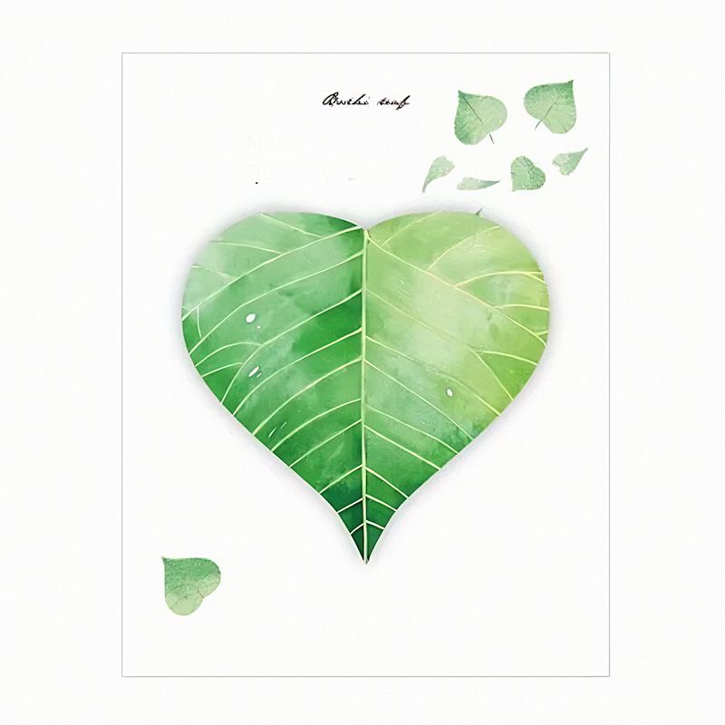30 yapraklı Kalp Şekilli Yaprak temalı memo pad, not almayı keyifli hale getirecek deseniyle süslenmiştir. Her bir yaprak, günlük hatırlatmalarınıza neşe katacak.