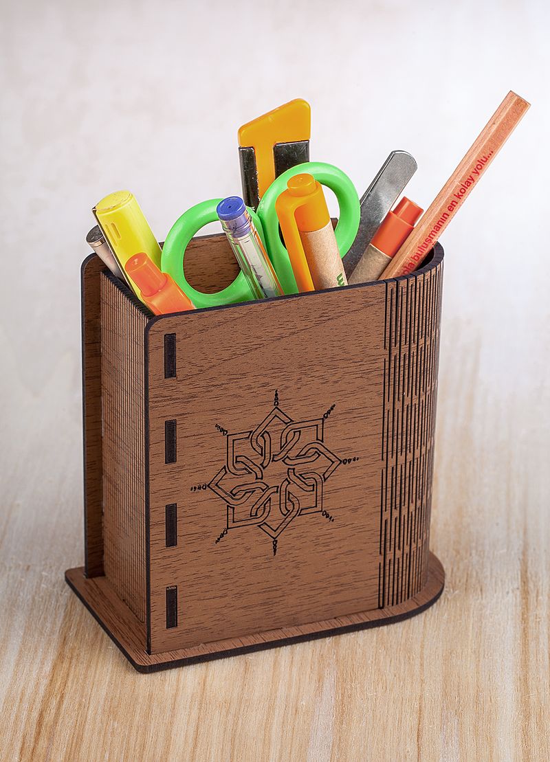 Kitap Şeklinde Ahşap Akordeon Kalemlik