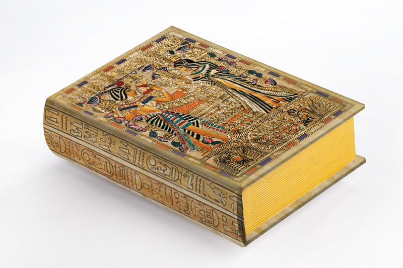 Kitap Şeklinde Ahşap Hediye Kutu - Mısır Papirus Tutankamon