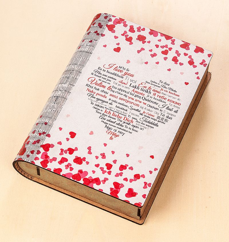 Kitap Şeklinde Mıknatıslı Ahşap Akordeon Kutu - Aşkın Dili