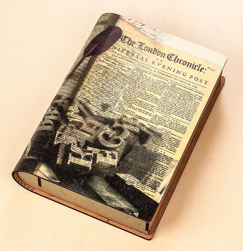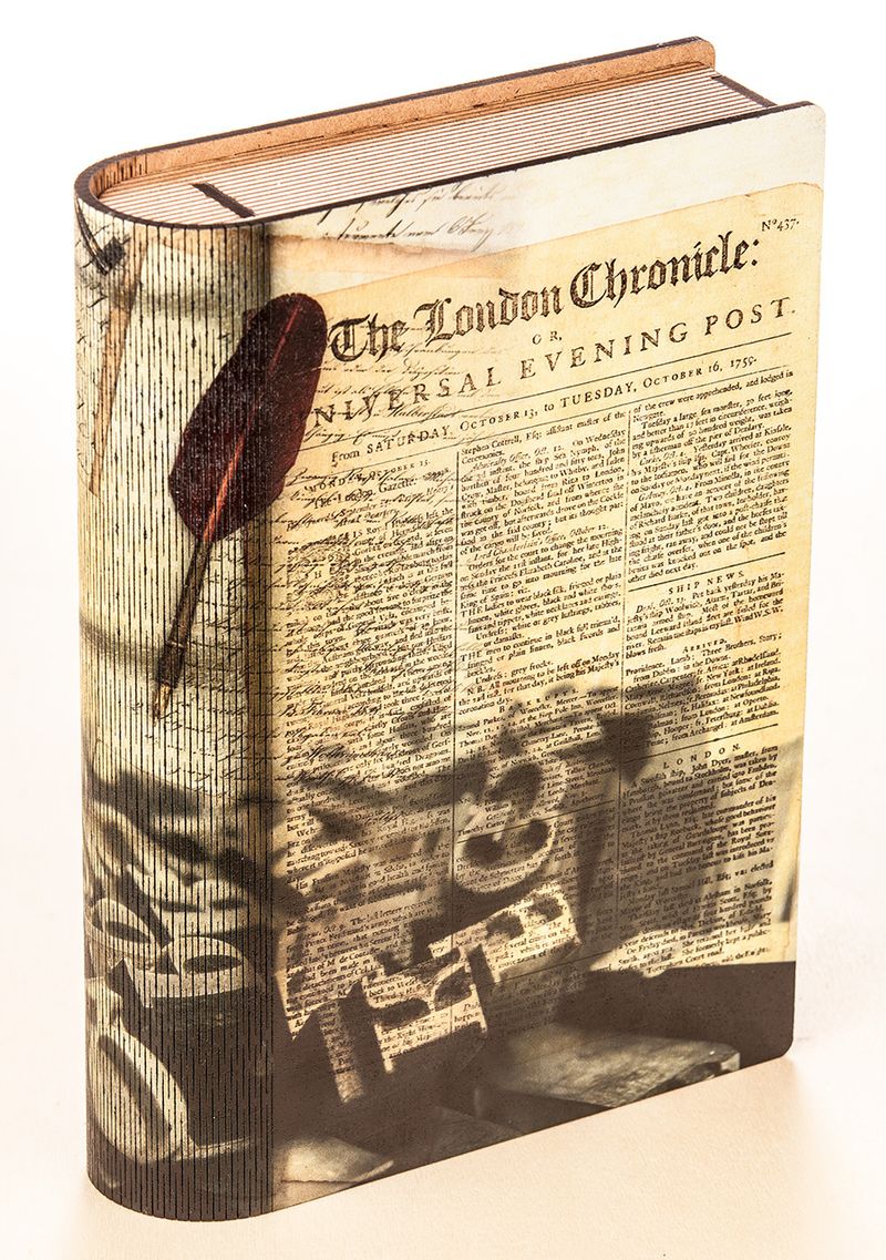 Kitap Şeklinde Mıknatıslı Ahşap Akordeon Kutu - Gazete Nostalji
