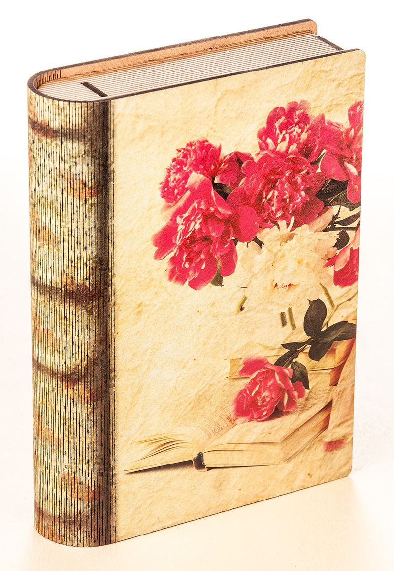 Kitap Şeklinde Mıknatıslı Ahşap Akordeon Kutu - Gül Nostalji