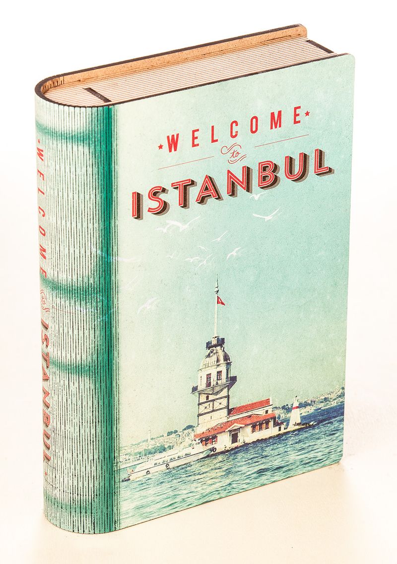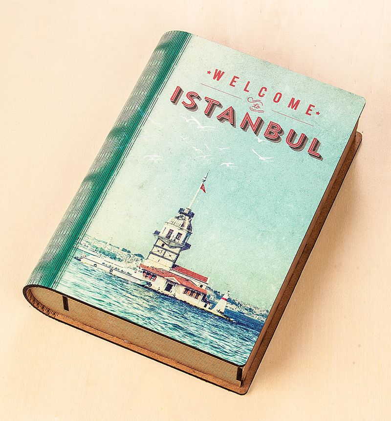 Kitap Şeklinde Mıknatıslı Ahşap Akordeon Kutu - İstanbul Nostalji