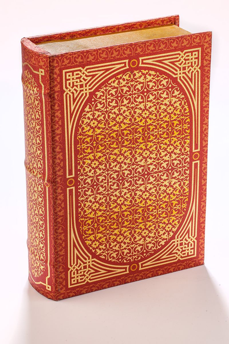 Kitap Şeklinde Yaldızlı Ahşap Kutu - Çiçek Figürlü