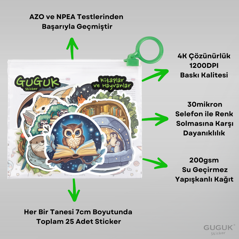 Kitaplar ve Hayvanlar Sticker Seti