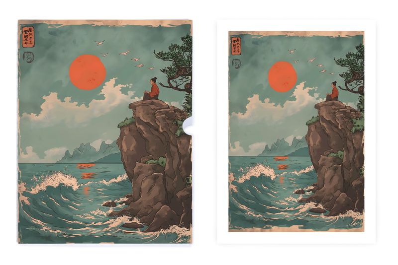Kızıl Gün Batımındaki Huzur, Özel Tasarım Kılıflı A4 Poster