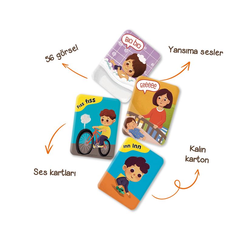Konuşturan Sorular ve Ses Kartları, içeriğinde yer alan yansıma sesler ve ünlemlerle çocukların Türkçedeki fonemleri fark etmesini, tanımasını ve ayırt etmesini sağlar. Böylece çocuklarda dil gelişimini destekler.