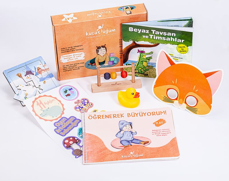 Bebeğinizin büyüme sürecini destekleyen birbirinden eğitici etkinlikler, gelişim basamaklarına uygun olarak tasarlanan oyuncak ve metaryeller; her ay Küçücüğüm setlerinde sizi bekliyor.