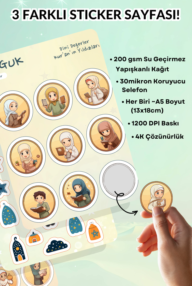 • Her Biri ~A5 Boyutunda (13x18cm) 3 Farklı Sticker Yaprağı